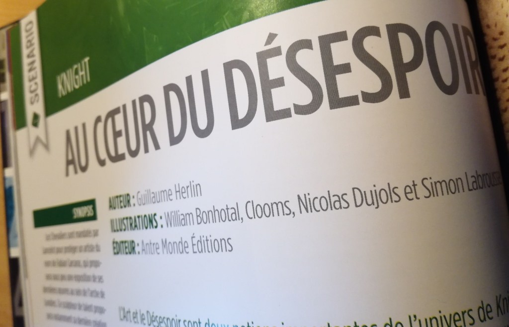 Une partie en actual play avec comme MJ, un de ceux qui a relancé le jeu Knight via les éditions Antre Monde, çà vous dit ? C’est par ici, via une partie en ligne, sur l’excellente chaine Youtube Volsung 2d6plusCool. Il est à noter que le bonhomme, Guillaume Herlin, est chroniqueur sur Roliste TV et auteur d’un scénar dans cet opus.