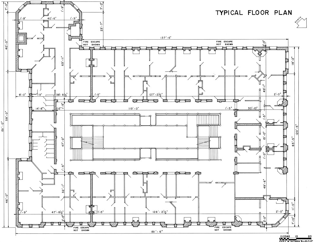 Pour les plans que vous trouvez ici, ce sont les vrais plans (libres de droits) du bâtiment. J’ai transformé une petite partie d’un étage pour en faire le lieu de vie de Grey.