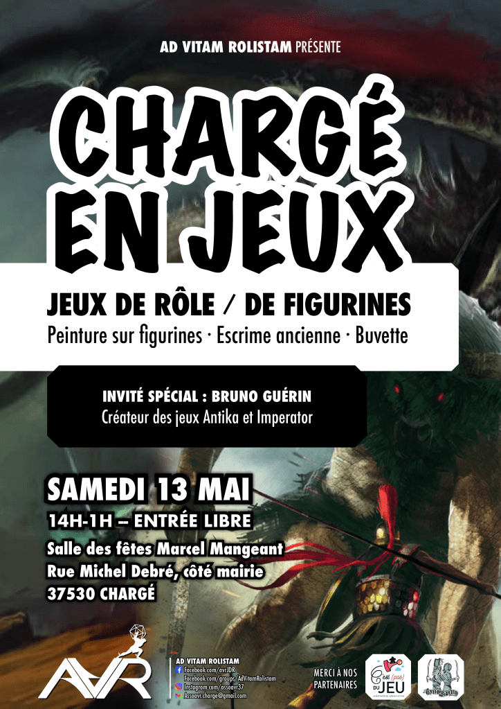 Imperator : Imperator est un jeu de rôle historique et héroïque, dans lequel les joueurs incarnent des héros pour qui seule compte la Gloire, qu’elle soit éphémère ou qu’elle perdure, car elle seule gravera leur nom dans l’éternité. De 14h à 19h – 5 joueurs – MJ et invité d’honneur : Bruno Guérin